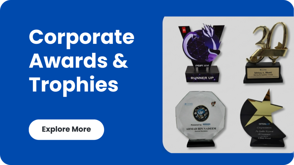 There’s something about a well-made trophy that hits differently. Not the plastic kind you get from a shop in Anarkali. We’re talking about custom trophies in Lahore — solid, laser-engraved, perfectly weighted, properly packaged. Whether it’s an annual sales award, a leadership recognition, a long-service medal, or a custom client appreciation gift, Qadri Glass makes trophies and awards that look like they mean something because they do. We’ve made awards for everything from real estate firms to fintech startups to textile mills, and every single one went out with the same level of care. Because when you’re recognizing someone’s achievement, the trophy should feel like the achievement.